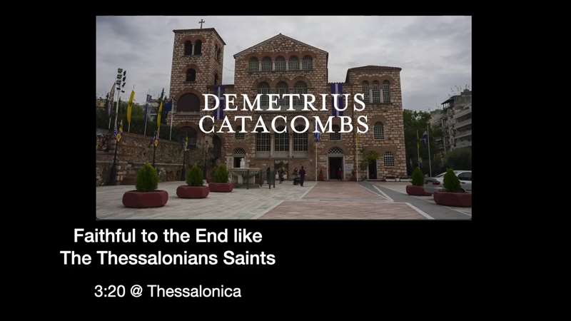 Well, now we're at the 25-minute mark plus the nine minutes, so 34 minutes. In here is one of my favorite spots. You can see it right there. That's the St. Demetrius Church and it's built over old Roman ruins that had underground tunnels and catacombs where the early believers were and the title of it is Being Faithful to the End like the Thessalonian Saints. So, for the next three minutes and 20 seconds, I'm going to take you through that door and downstairs I'm going to talk to you about one of the early saints, a centurion, Demetrius, who was martyred because he wouldn't deny Christ. And that's what's headed our way as the world coalesces into darkness. If we only have the persecution that has been around outside of the Tribulation, just throughout all the centuries of Christianity through the last 20 centuries, if we only have the persecution at that level then we're. Demetrius wasn't in the Great Tribulation. He was just in a world that was against God. That's what we're in right now, and he had to make a choice to follow Christ or to save his skin. And he gloriously followed Christ. Let's watch this video.