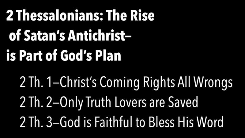 But now let's talk about the Tribulation. 2 Thessalonians chronicles the rise of Satan's Anti-christ. In fact, Paul connects together what Jesus said in Matthew 24 and what Daniel said. And he puts it together and teaches it to the local church. And we're going to see that. But here are the three chapters that's going to be primarily in chapter two of 2 Thessalonians, but Christ coming is going to right all wrongs. That's why it says here, this is a verse we're going to learn when the Lord Jesus is revealed from Heaven. This is 2 Thessalonians 1:7 inflaming fire, inflicting vengeance on those who do not know God, and on those who do not obey the Gospel of our Lord Jesus Christ. Christ coming is going to right all wrongs.