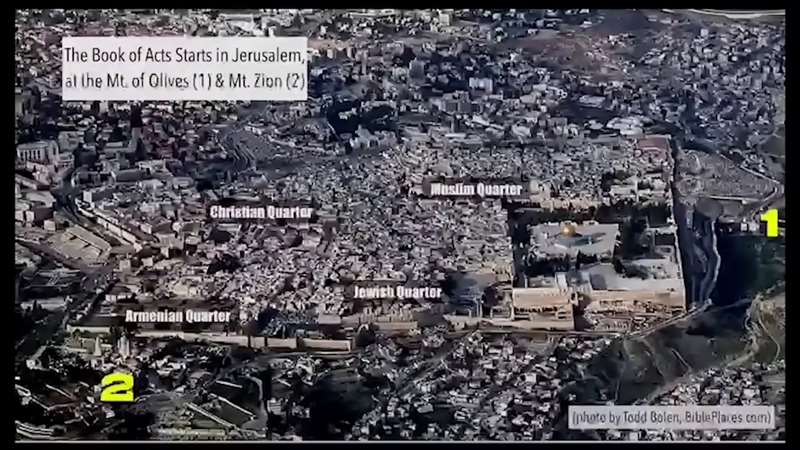 This is just an overview of the Book of Acts, and it starts between the Mount of Olives and Mount Zion, everything we're reading about.