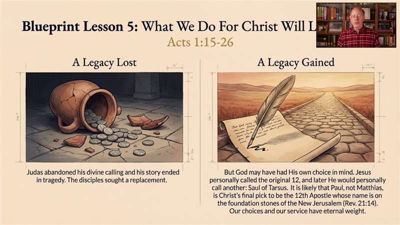 5. What You Do for Christ Lasts Forever (Acts 1:15-26; Revelation 21:14) Looking at the tragic contrast of Judas throwing away his calling, you will be reminded of the ultimate stakes of your life. God may have even personally chosen the Apostle Paul as the true 12th foundation stone in heaven. This lesson is a breathtaking reminder that while the world fades, the souls you reach and the obedience you offer to Christ will echo for all eternity.